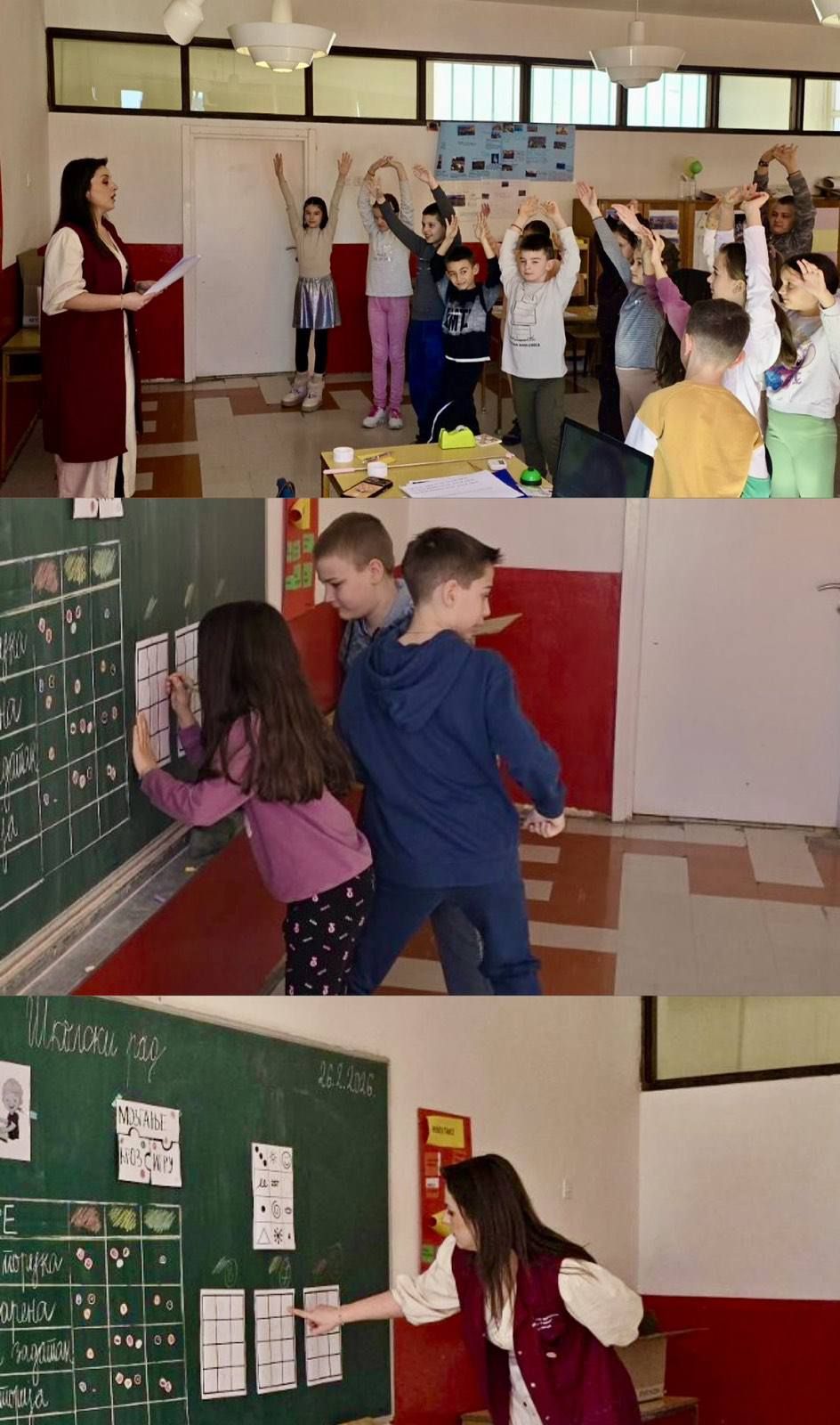 Nastavnik prati neposredno rad grupa, a bodove iz igrica zapisuje u tabeli na tabli (lijepi naljepnice u vidu ilustrovanog mozga).