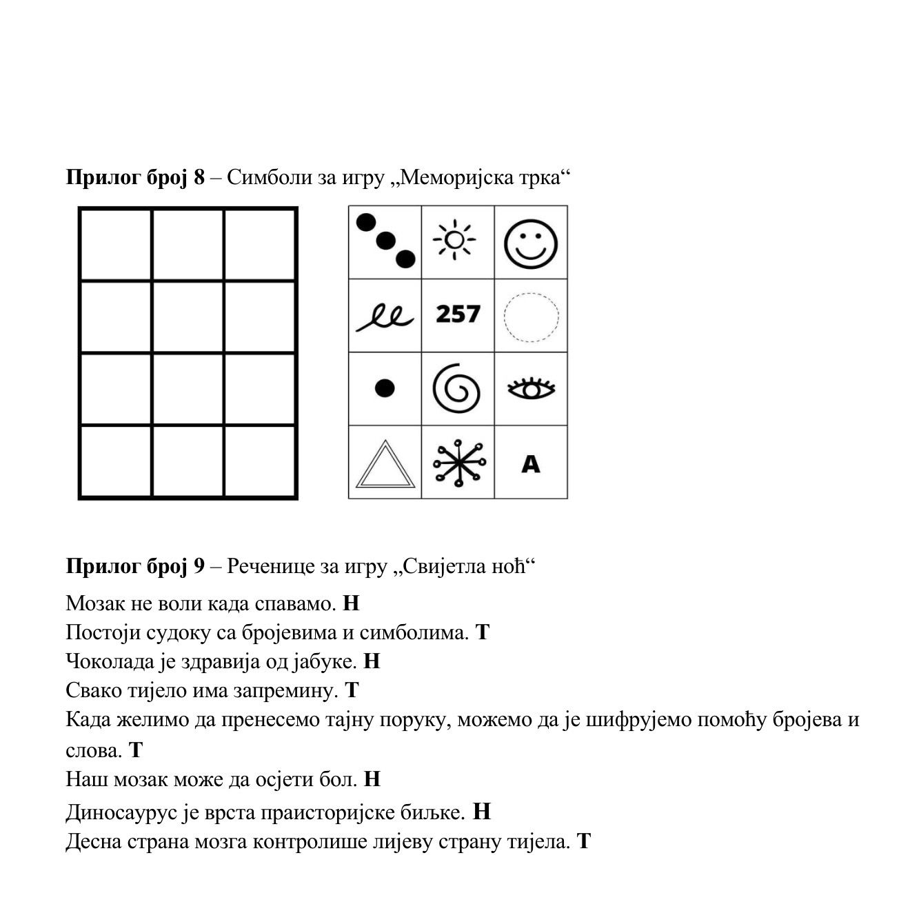- Igra „Svijetla noć“ (tačno – netačno)