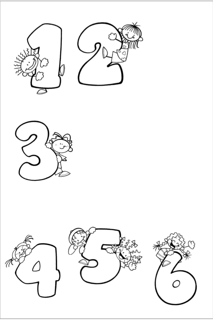 Na podlozi za picu se nalaze ispisane cifre 1,2,3,4,5 i 6. Imenujemo ih, a zatim u grupi gdje se odvijaju likovne aktivnosti te cifre bojimo i ukrašavamo.