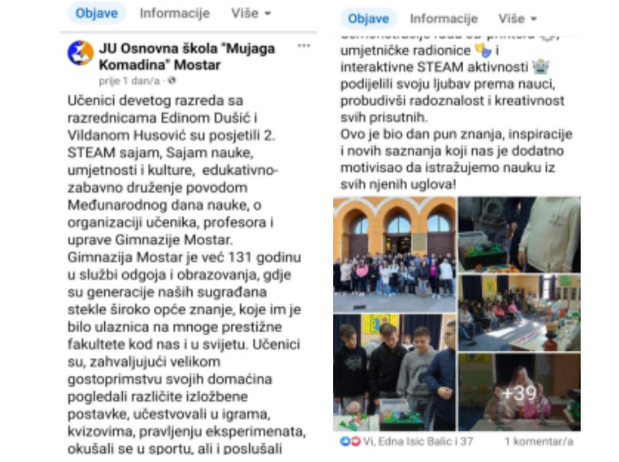 - https://bljesak.info/sci-tech/obrazovanje/foto-sajam-znanosti-mostarci-kroz-primjere-ucili-o-znanosti-i-umjetnosti/452610
