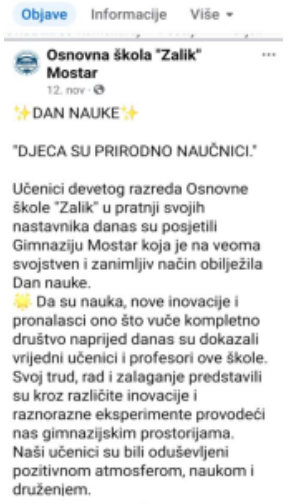- Dobro osmišljenom medijskom kampanjom doprinijeli smo pozitivnom imidžu nauke, umjetnosti, obrazovnih institucija i općenito grada Mostara. Zadovoljstvo je bilo pratiti medije i čitati o svojoj školi uz najljepše pohvale
